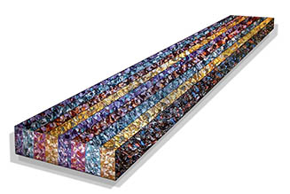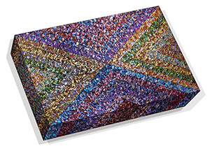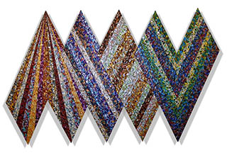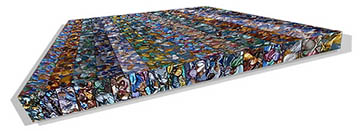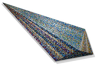 as thousands of brushstrokes are compressed into linear perspective formats on flat shaped