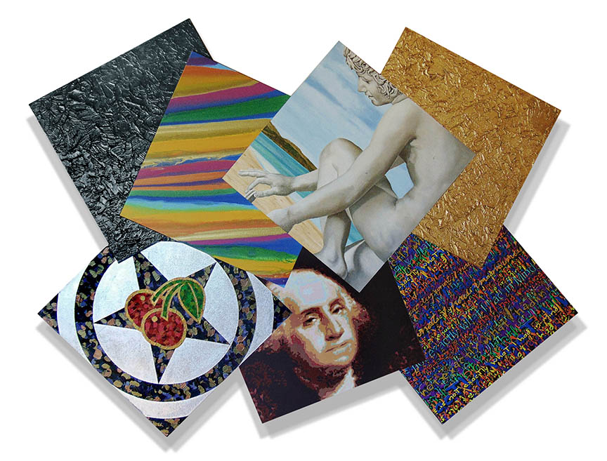 60x45 inches. Oil, acrylic, silica, grout, gold leaf, silver leaf on shaped canvas.