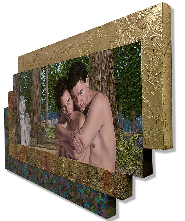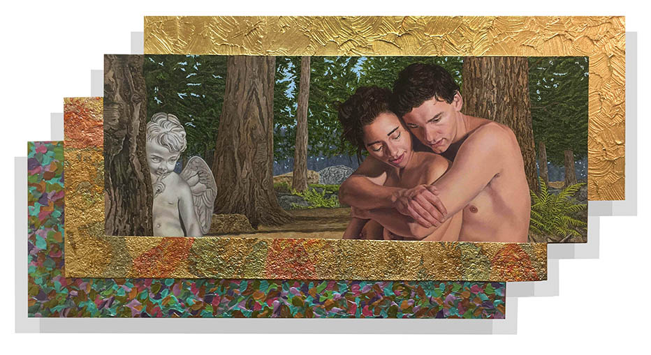 Jack Reilly, "Lysander and Hermina" 24x46 inches, Oil, Acrylic, and Mixed Media on Shaped Canvas, ©2018