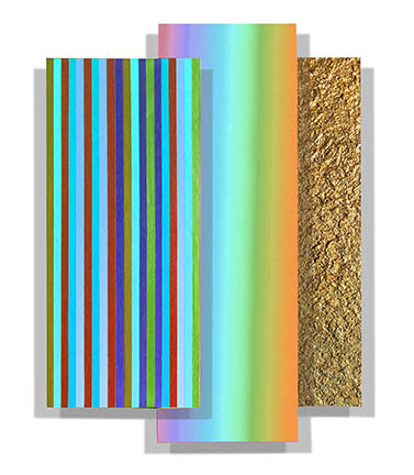 ![]() "Phase III Trilogy, 27x36 inches, Acrylic and Metallic Pigments on Shaped Canvas, ©2019 |